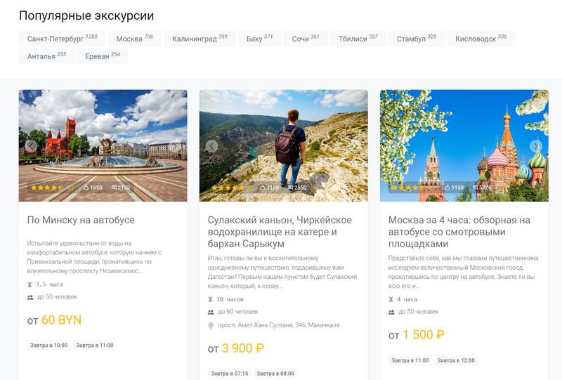 Также для покупки имеют значения цены, и здесь они в обязательном порядке приведены в каждом туре. Можно сравнить порядок цен на схожие экскурсии, чтобы выбрать оптимальную. Если же самостоятельно не хочется заниматься изучением предложений, можно воспользоваться рекомендациями сервиса, который определяет лучшие предложения на основании анализа отзывов, цен, предложений.