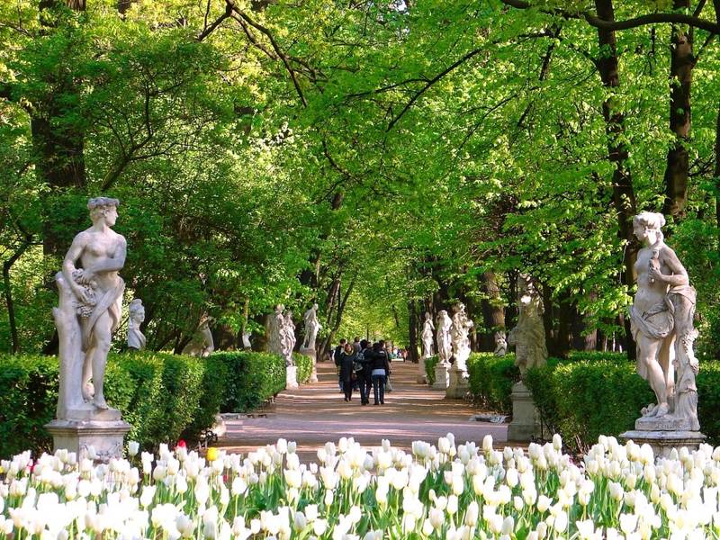 Вишенкой на торте остается Петергоф - дворцовый комплекс с роскошным садом и парком на берегу Финского залива. Поезду сюда можно совместить с водной прогулкой.